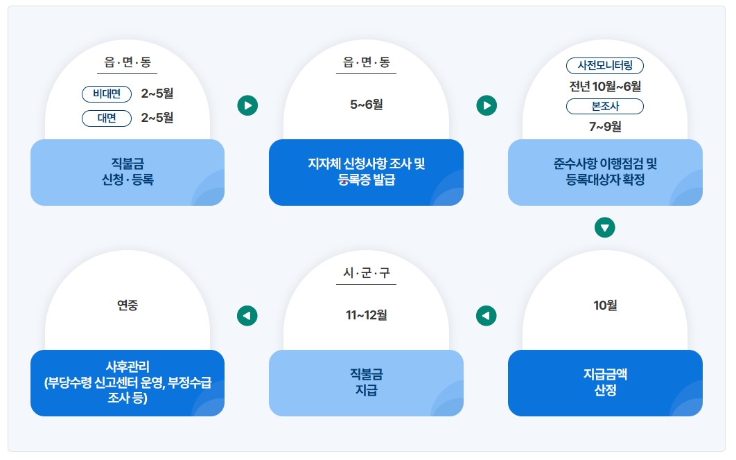 - 소농직불금: 소규모 농가에 고정 금액(130만 원) 지급.