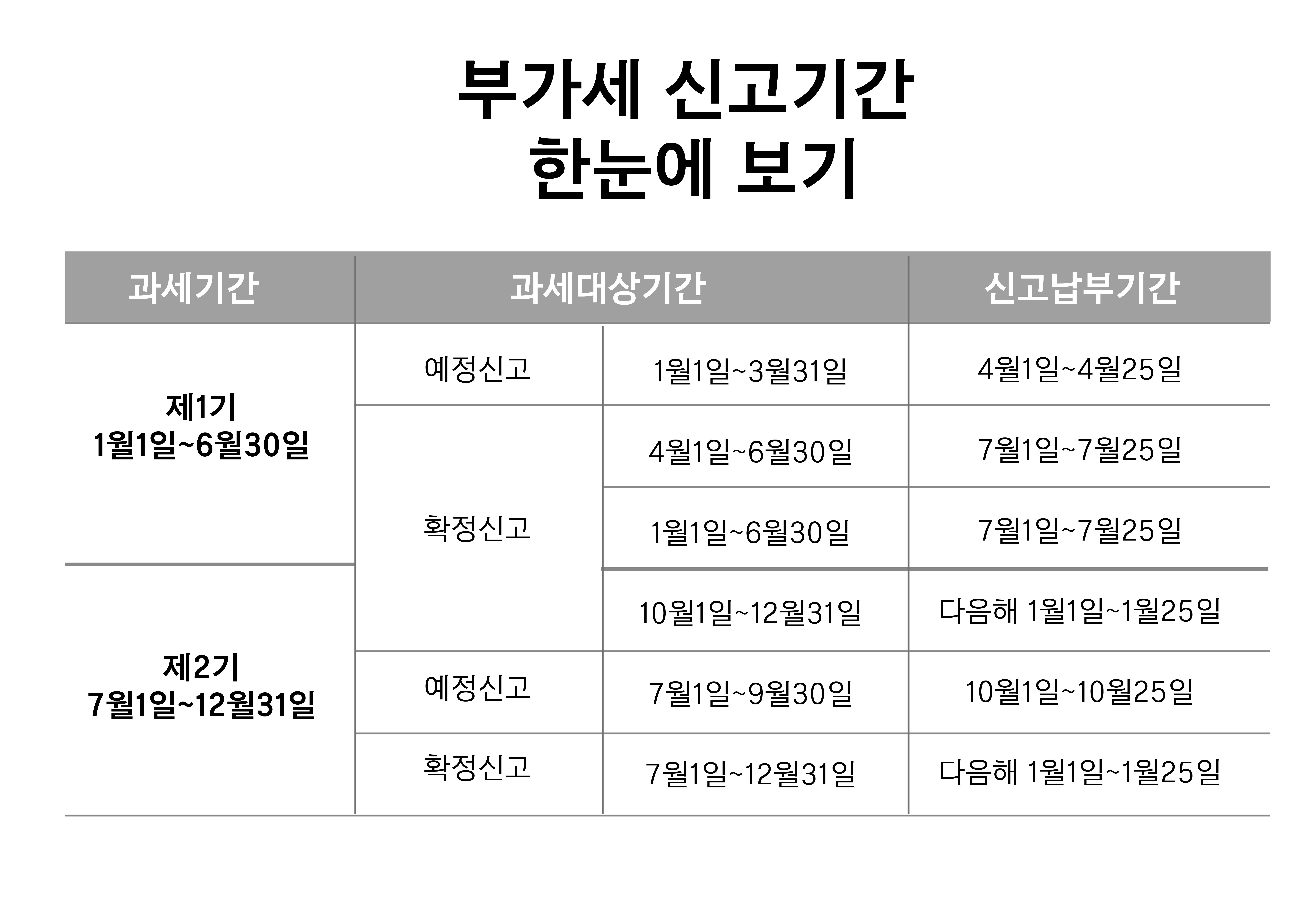 부가가치세 신고기한은 1월 25일, 7월 25일입니다. 만약 이 기간이 지나 신고기한을 놓쳤다면 이렇게 해보세요.